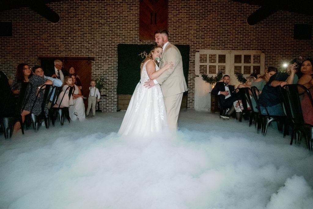 Then, it was time for the grand entrance of the couple. We closed the doors and turned off the air to create a dreamy atmosphere, allowing them to have a special dance on a cloud. It was a moment of pure enchantment and romance, creating memories that will last a lifetime.